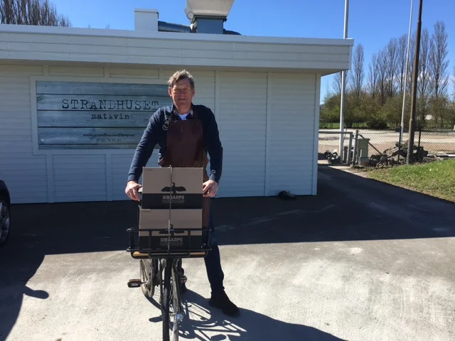 Rolf Nilsson 22 april 2016 Miljövänlig transport av närproducerad öl till Strandhuset i Sibbarp. Rolf Nilsson 22 april 2016 Strandhuset öppnar för säsongen den 30 april och givetvis finns öl från Sibbarps Husbryggeri på plats.